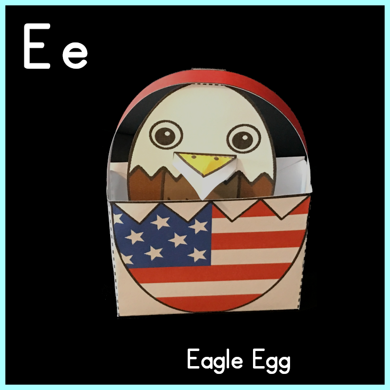This little eagle egg craft is cute and fun! Decorate the basket, handle, and the eagle. Put the parts together to make an animated eagle toy. Tap the top of the handle and the eagle will bounce up and down. You can fill the box with Fourth of July stickers, poppers, and candy.