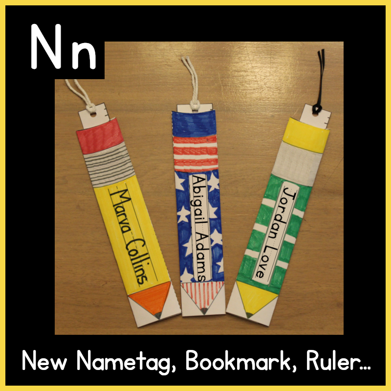 This back-to-school craft is fun and practical.  Your students can make and decorate their own name tag. On the back there is an alphabet line in both manuscript and cursive.  The craft also includes a ruler that slides into the name tag.  The ruler doubles as a bookmark.
