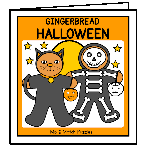 The gingerbread cookies are dressed in costumes for Halloween.  Put the pieces together to see their costumes.  Or mix and match to make silly costumes.