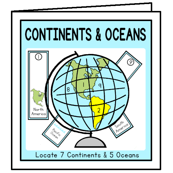 Learn the names of the 7 continents and 5 oceans.  Locate them on the world map.  Play a mapping game.