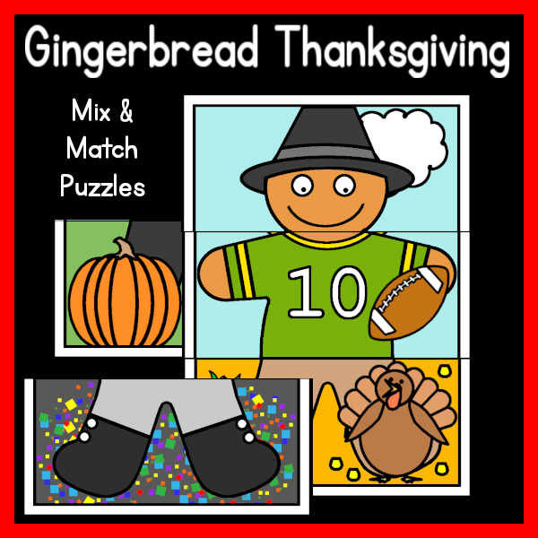 The gingerbread cookies are celebrating the Thanksgiving holiday.  Put the puzzle pieces together to find out how they celebrate.