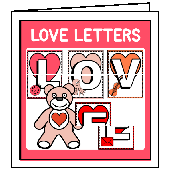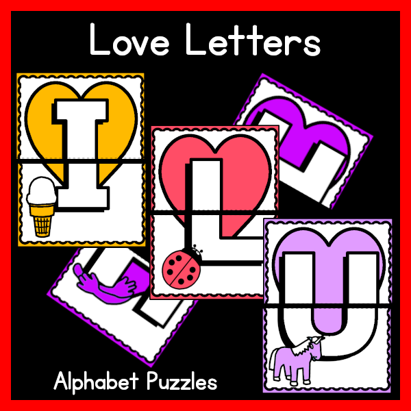 These valentines are all mixed up. Put them together to make 12 different capital letter valentines.