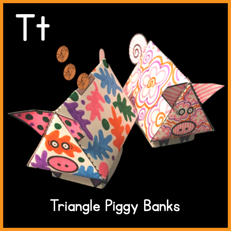 This cute craft is fun and practical. If you are working on geometric shapes – this bank is a triangle and a prism. If you are working on counting coins – it’s a piggy bank. If you are doing a farm unit – it’s a pig.